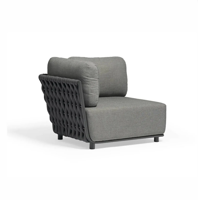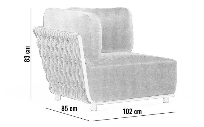 - Luksusowy element prawostronny ogrodowy HUG od Couture Jardin to połączenie elegancji i funkcjonalności. Wykonany z malowanego proszkowo aluminium oraz plecionki z liny, oferuje komfort dzięki wodoodpornej powłoce TPU i poduszkom z pianki tapicerskiej.