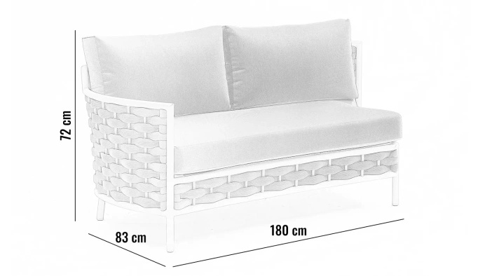 Sofa tarasowa LOOP prawostronna od Couture Jardin to połączenie elegancji, nowoczesnego designu i komfortu użytkowania. Dzięki solidnej konstrukcji oraz starannie dobranym materiałom, stanowi funkcjonalny i stylowy element wyposażenia przestrzeni zewnętrznej, pełniąc rolę centralnego punktu aranżacji ogrodu, tarasu lub balkonu.